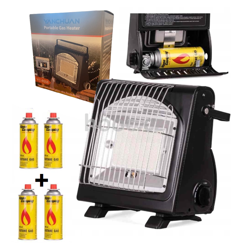 Plynové topení na kartuše + 4 kartuše Topí i vaří 2v1, na PB i kartuše. Topení s vývodem na Pb 2 kg lahev/bombu. Umožňuje velký topný výkon až 1,7kW. Topení lze napájet na kartuše 227 g nebo připojit PB lahev. Topení je použitelné jako topení a také na rychlé vaření. Výborně topí: ověřeno rybáři, karavany, zahrádkáři a camping sporty.