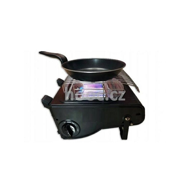 Toto zařízení v sobě kombinuje plynový ohřívač a plynový vařič - na mřížku jednoduše postavíte hrnec, pánev nebo konvici a můžete vařit
